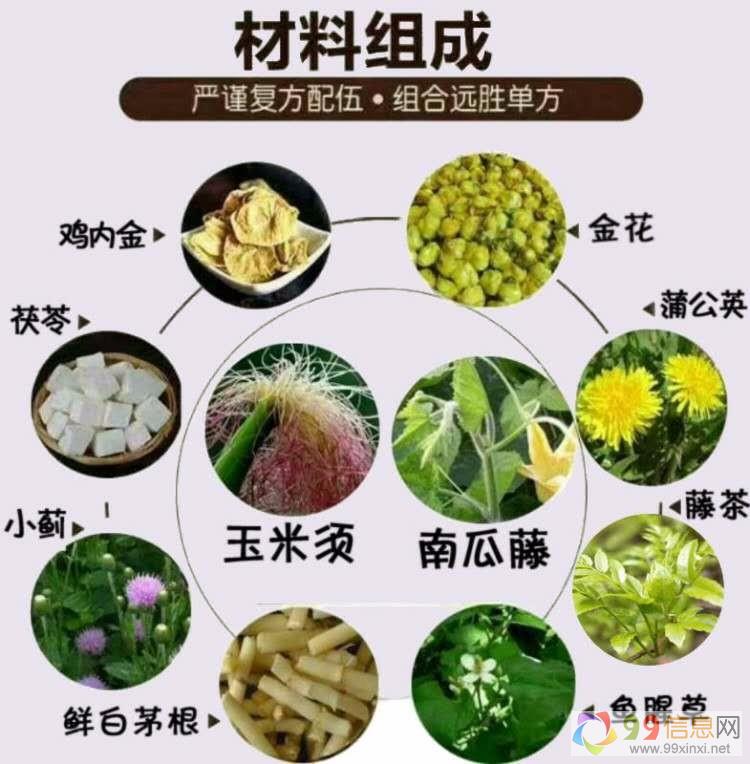 肾结石常伴有疼痛、排尿不畅、血尿等问题,成分里的藤茶、玉米须都有消炎止痛,利尿通淋的效果www.99xinxi.net99信息网。还有一些能促进输尿管扩张的成分,帮助堵塞在输尿管的结石顺利排出,并消炎止痛。